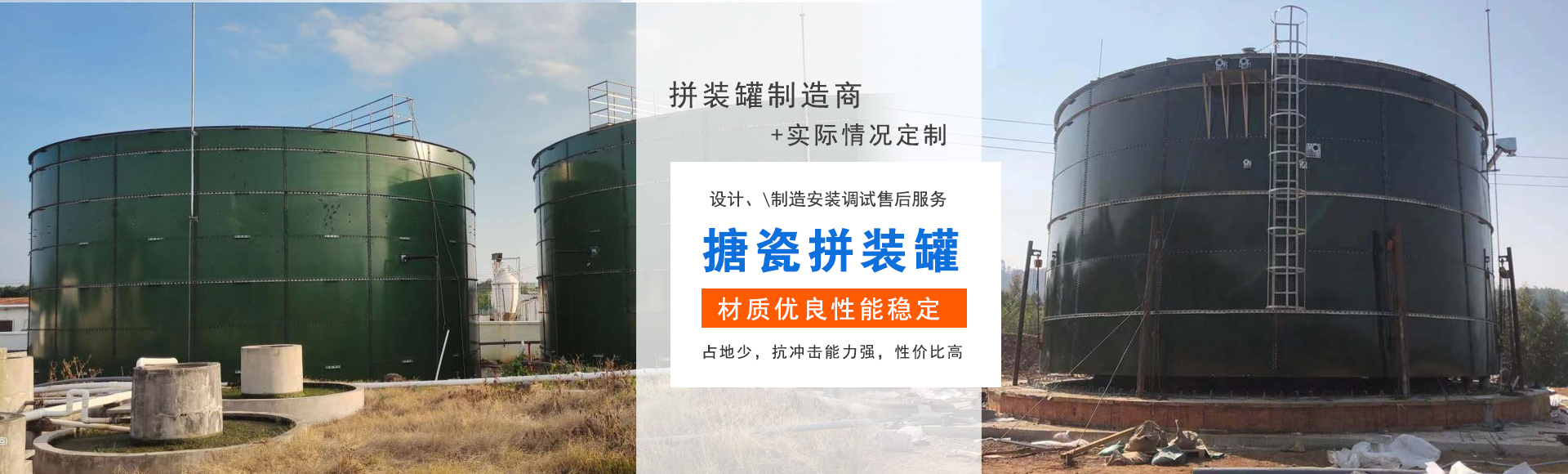 拼裝罐是采用在工廠生產的標準搪瓷鋼板現場拼接而成的容器,密封膠密封,具有安裝快速、防腐性能好等優點。適用于儲水、儲油以及散貨儲存等。